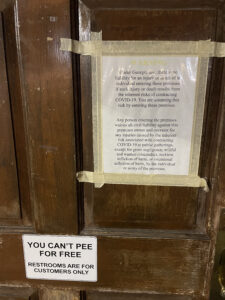 We were defaulting to the fancier restaurant in the hotel until Dad spied a dive bar across the street and wanted to check it out. The signs on the entry door made me almost certain that Dad would not want to continue on, but he opened the door undeterred. I took off my button-down shirt leaving my t-shirt to make sure we didn’t stand out too much. The food was good, the service super friendly, and I’m not sure they would have allowed us to wear masks if we had wanted to. Neither of us got Covid (we tested every few days in Florida) – I can imagine it would be in just such a place one would catch Covid. (In the weeks that have passed since, of course, it turns out everyone can get Covid anywhere, anytime, masked or unmasked.)